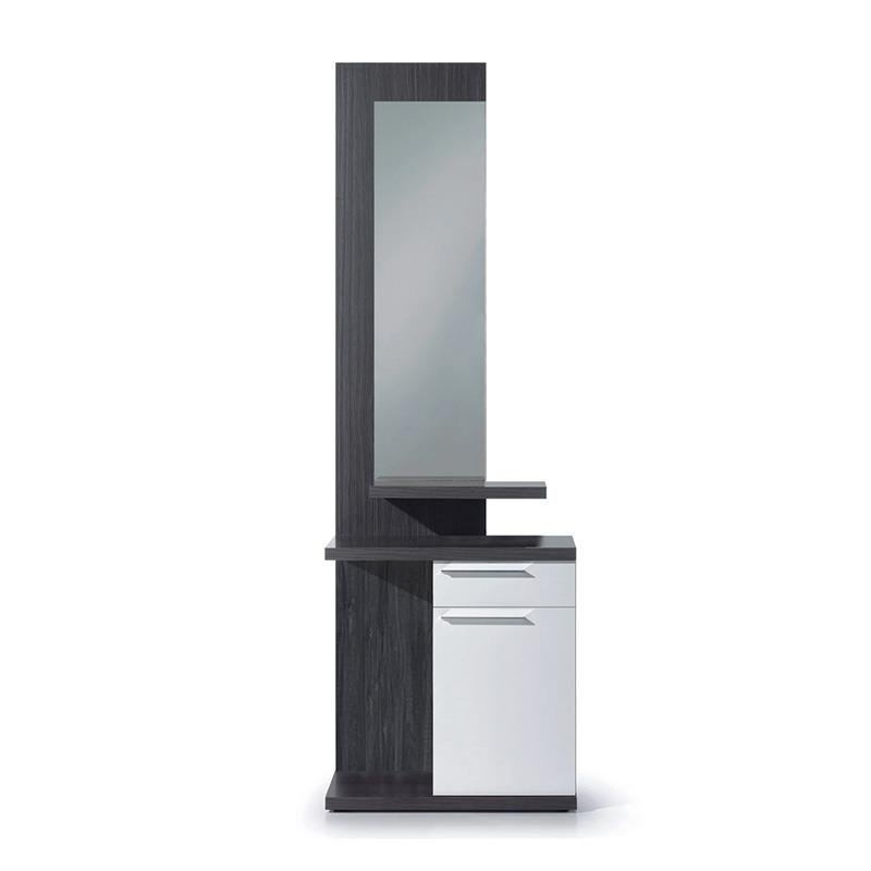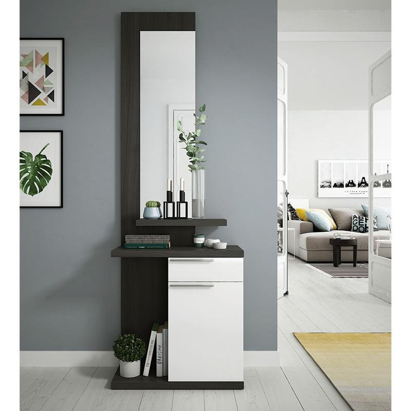RECIBIDOR 2 CAJONES + ESPEJO 186X61X29CM GRIS CENIZA/BL. BRILLO MOMI