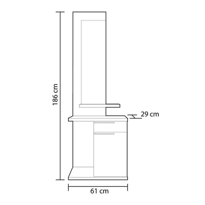 – Recibidor de diseño elegante. – Cuenta con un cajón para almacenaje de objetos pequeños como llaves, móviles, cartas, un armario prqueño, 3 estantes y un espejo. – Ideal para decorar la entrada de casa. – Ocupa poco espacio. – Limpieza fácil.
