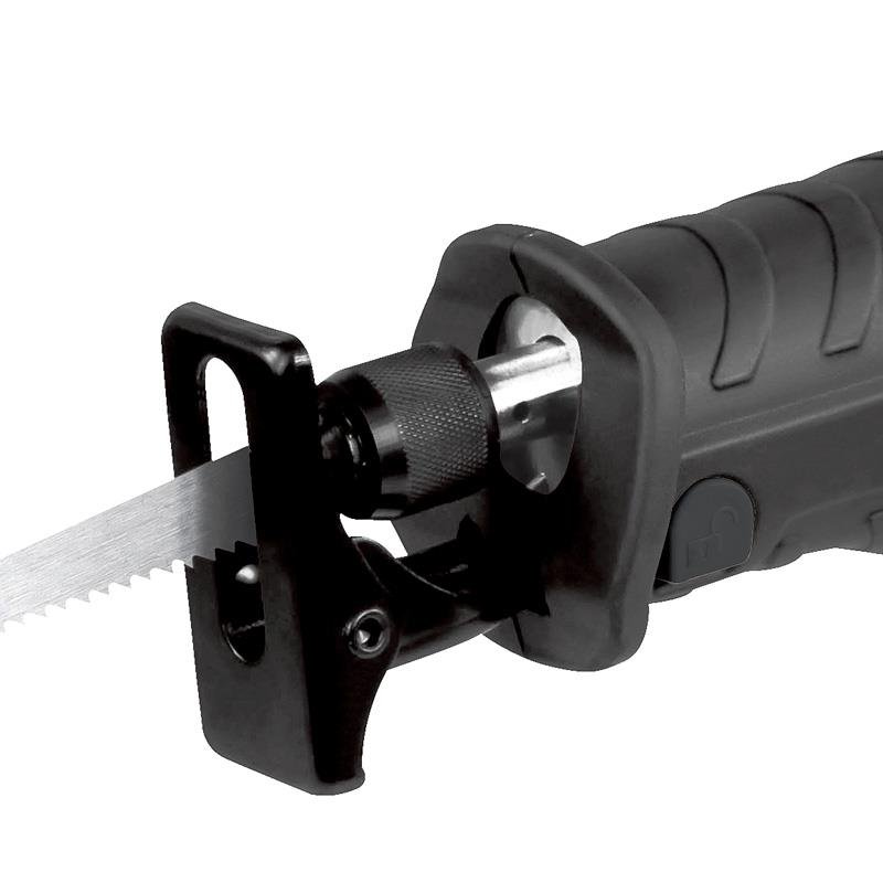 – Velocidad regulable 900-3.000 rpm. – Potencia: 710 W. – Carrera: 20 mm. – Capacidad de corte: en madera: 115 mm, aluminio 12 mm, acero 8 mm. – Botón de bloqueo.
