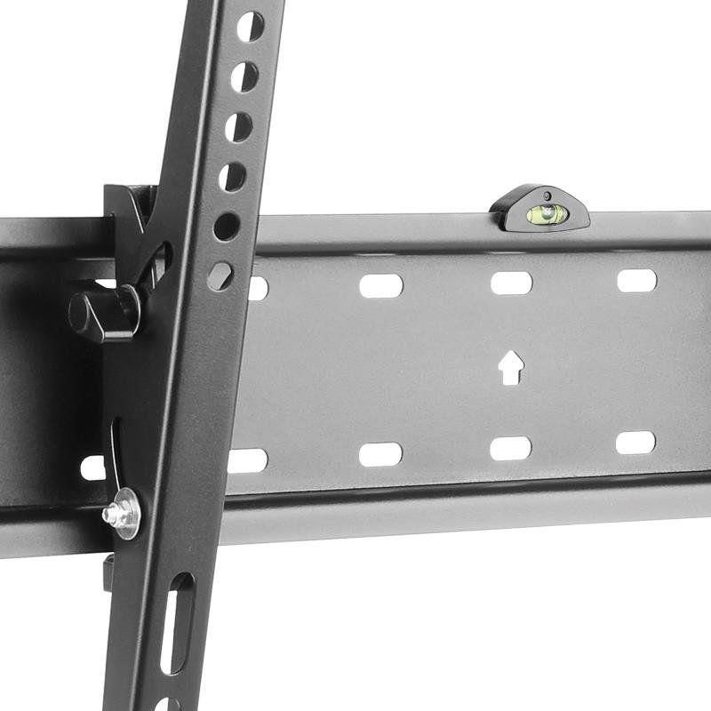 – Fácil instalación y montaje. – Modelo universal. – Sistema de anclaje compatible con norma VESA (máx. 600 x 400 mm). – Nivel de burbuja integrado. – Incluye los accesorios para la instalación. – Plasma / LCD / LED 37 – 70″. – Inclinación de +12º – 12º sin desmontar el TV del soporte. – Distancia pared: 53 mm. – Medidas: 662 x 112 x 56 mm. – Peso máx: 40 kg.