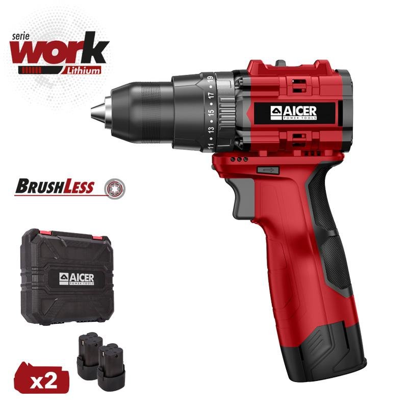 TALADRO PERCUTOR 16V BRUSHLESS SERIE WORK AICER (2X 2.0AH)