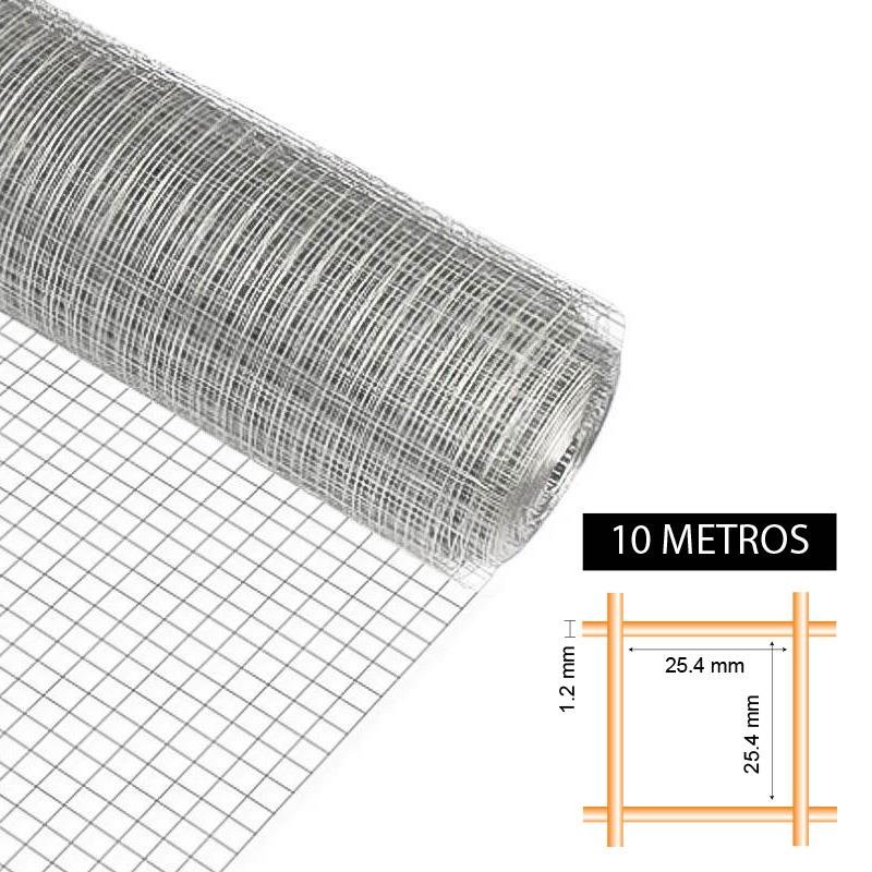 – Tela electrosoldada galvanizada. – Medidas: 25.4×25.4×1.2 mm. – Largo 10 metros. – Ideal para limitar el perímetro de terrenos y parcelas, agricultura, ganadería, granjas, jaulas, trabajos de bricolaje, etc.